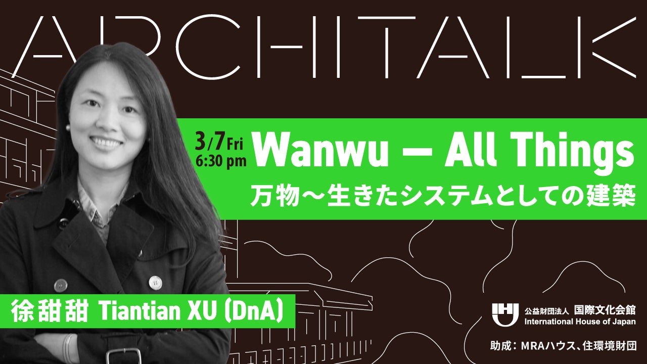 公益財団法人国際文化会館(東京都港区、理事長:近藤正晃ジェームス、以下、国際文化会館)では、2025年3月7日(金)に、持続可能な建築国際賞を受賞した徐甜甜氏を招聘し、講演会「万物~生きたシステムとしての建築」を開催いたします。