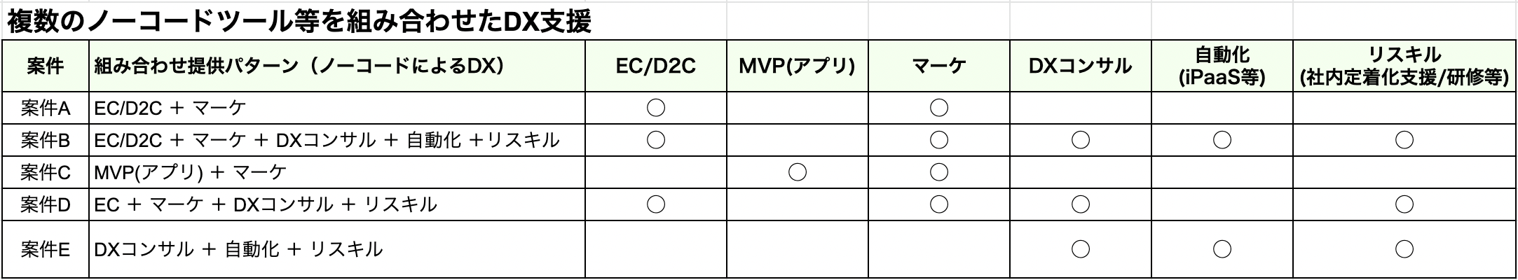 <実際の案件例※(複数ノーコードによるDX支援)>