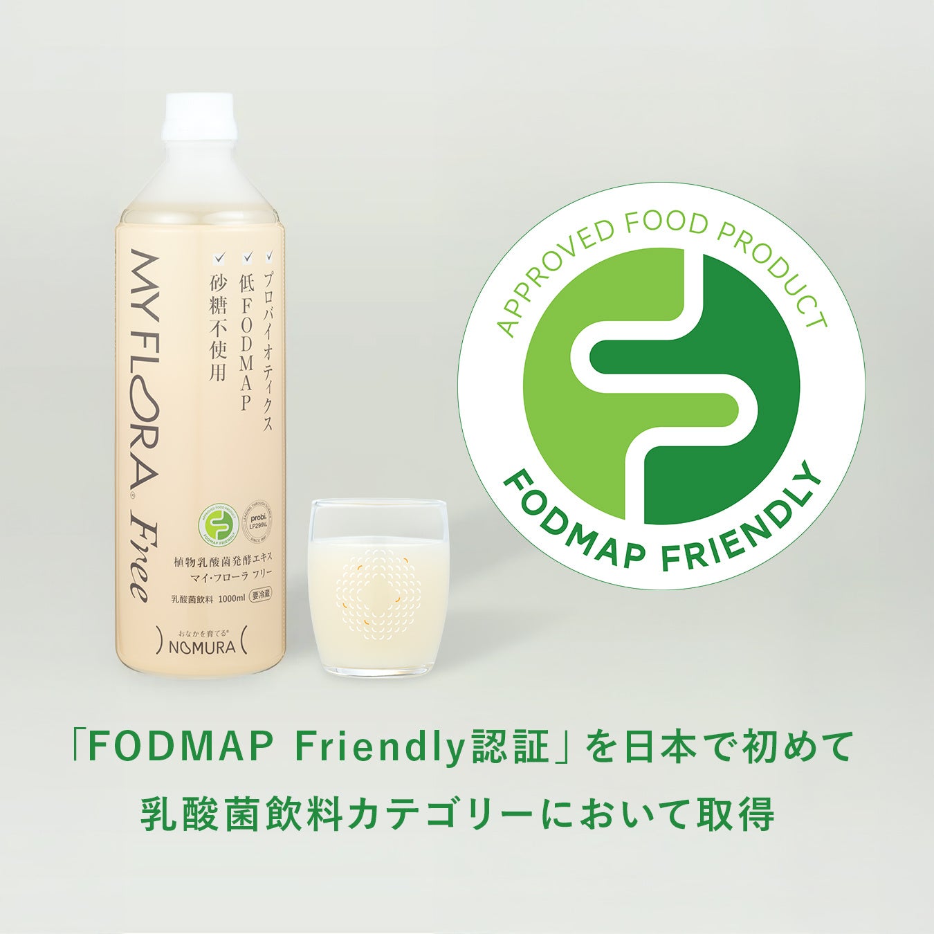 今回、「腸活している人のおなかトラブルの実態と医師が注目する“低FODMAP食”の重要性」に関する調査を実施した野村乳業株式会社(https://www.nomura-milk.co.jp/)は、「マイ・フローラ フリー」を提供しています。「マイ・フローラ フリー」はデリケートなおなかにやさしい「FODMAP Friendly認証」を日本で初めて乳酸菌飲料カテゴリーにおいて取得しました。