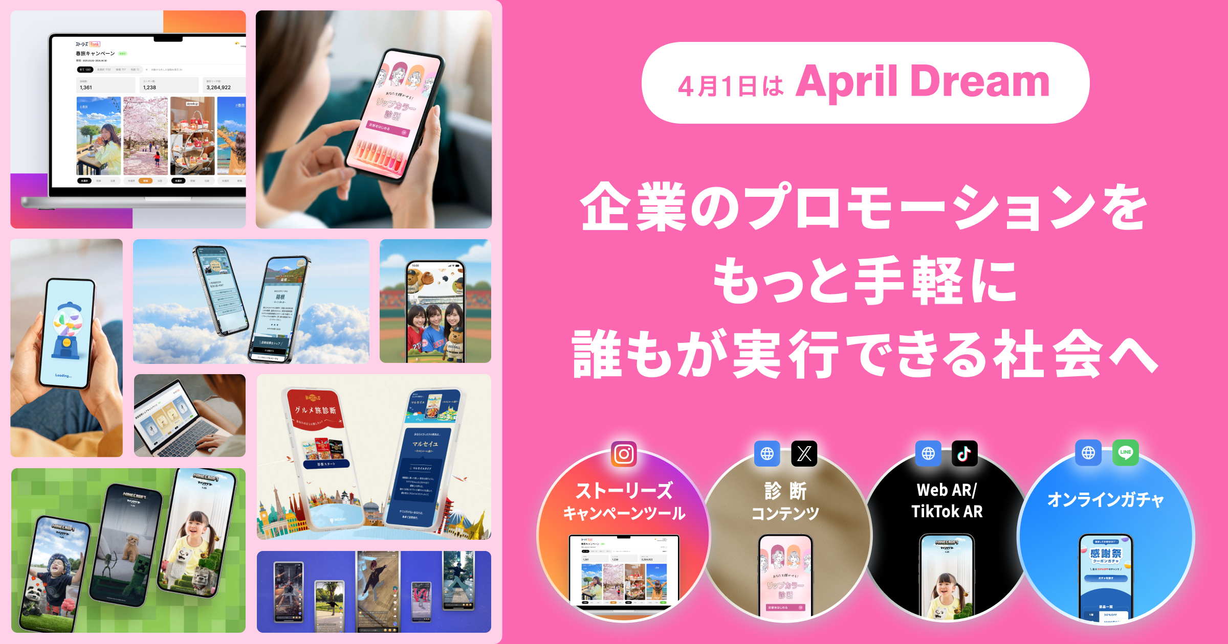 このプレスリリースは、April Dreamプロジェクトに共感し、4月1日を夢があふれる日にしようとする事業者が、やがて叶えるために発信した夢です。