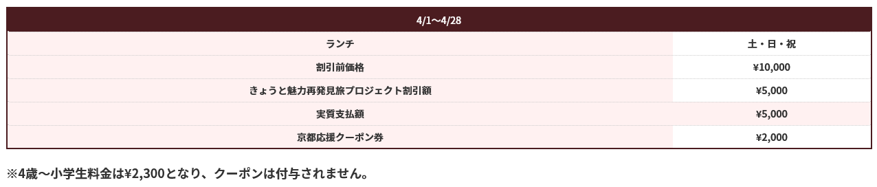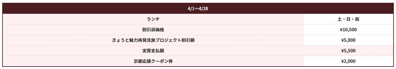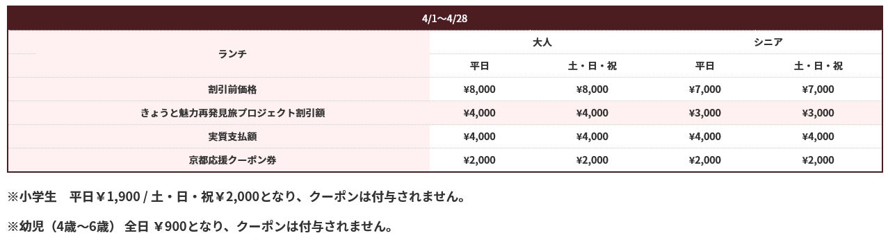 料金 京都応援クーポン2,000円分付