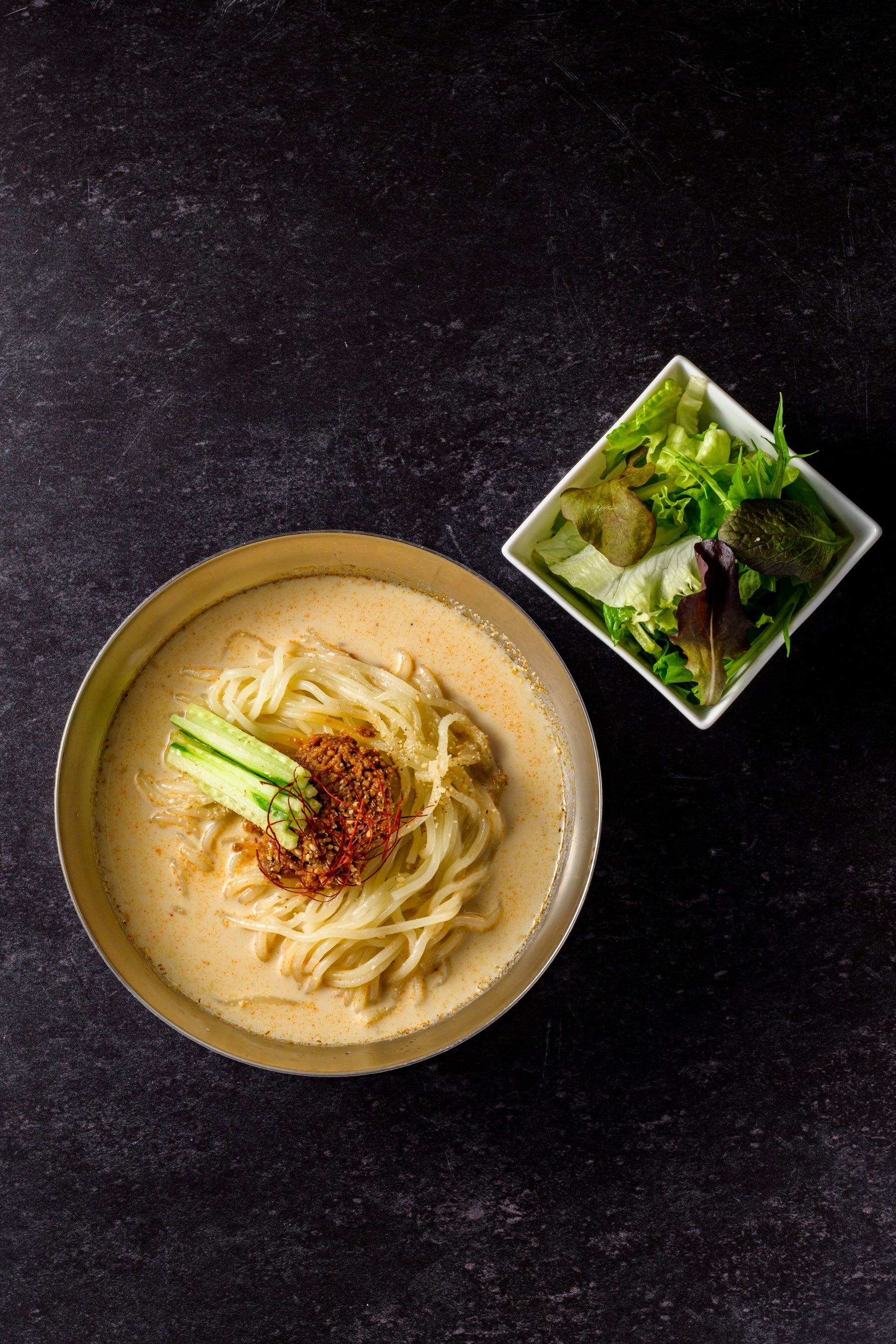 「鶏だし冷麺」の特製スープをベースに上質な練りごまを合わせたスープに仕上げました。