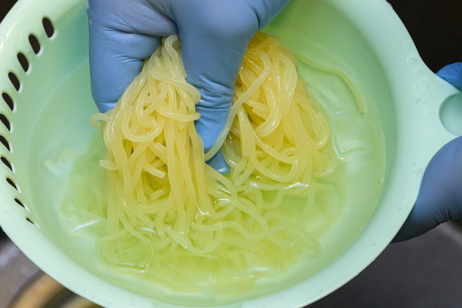 「鶏だし冷麺」はツルっとした舌ざわりともちもちとした食感が人気で注文数は前年比344%アップしました。