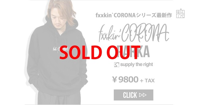 ファッションバイヤーMBを中心に立ち上げた自社アパレルブランド「supply the right(サプライザライト)」の人気シリーズ”fxxkin’ CORONAシリーズ”第4弾のfxxkin’ CORONAパーカーが大好評につきSOLDOUTしました!!