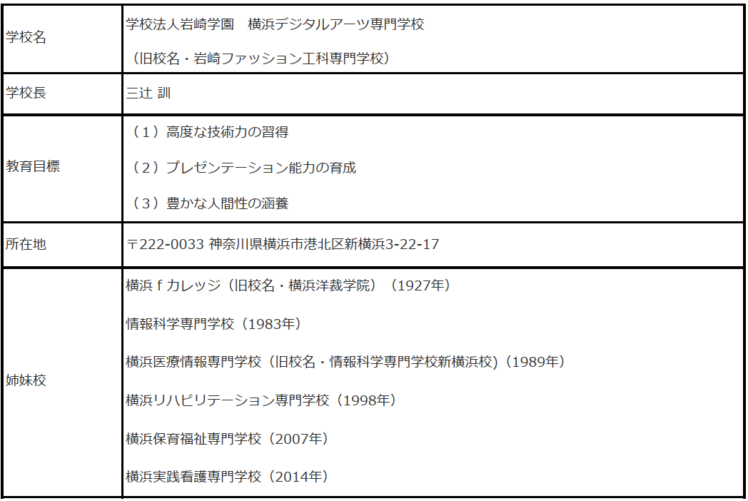 ■学校法人岩崎学園 横浜デジタルアーツ専門学校 概要