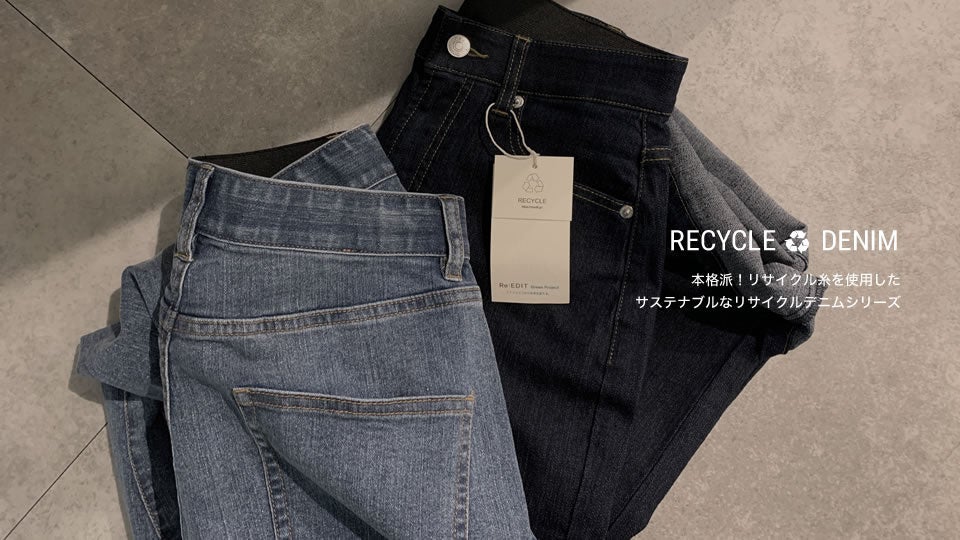 Re:EDIT(リエディ)では以前よりサステナブルやSDGsへの取り組みを行ってきました。中でもデニムは、どんな年代のお客様も、コーディネートにも取り入れやすいアイテムのひとつです。普段の生活の中にサステナブルを取り入れていただきたい、そんな思いからリサイクルデニムの開発がスタートしました。