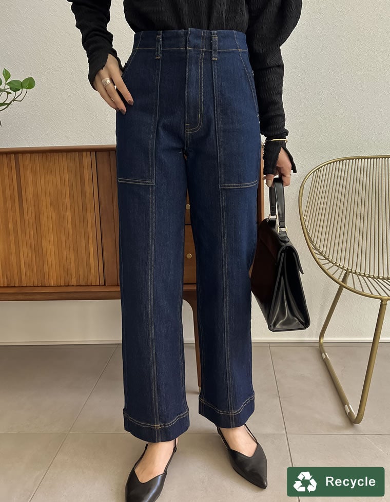 [低身長/高身長サイズ有]バックベンツストレートリサイクルデニム