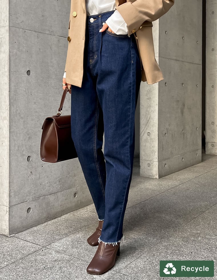[大きいサイズ]2TYPEリサイクルハイウエストテーパードデニム