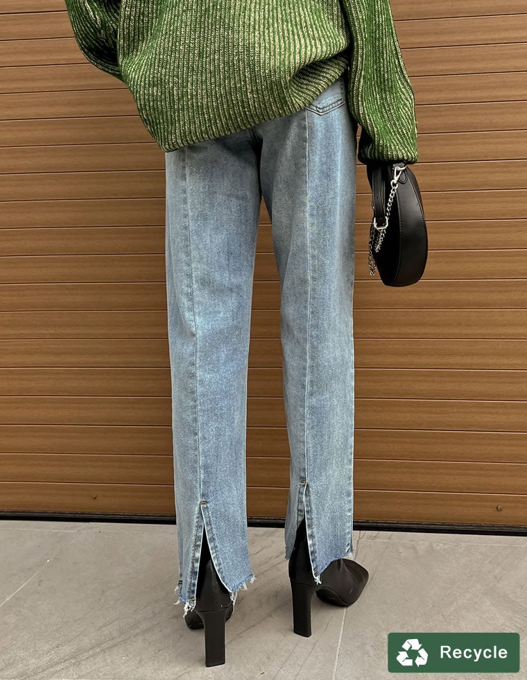 [低身長/高身長サイズ有]センタースリットリサイクルデニム