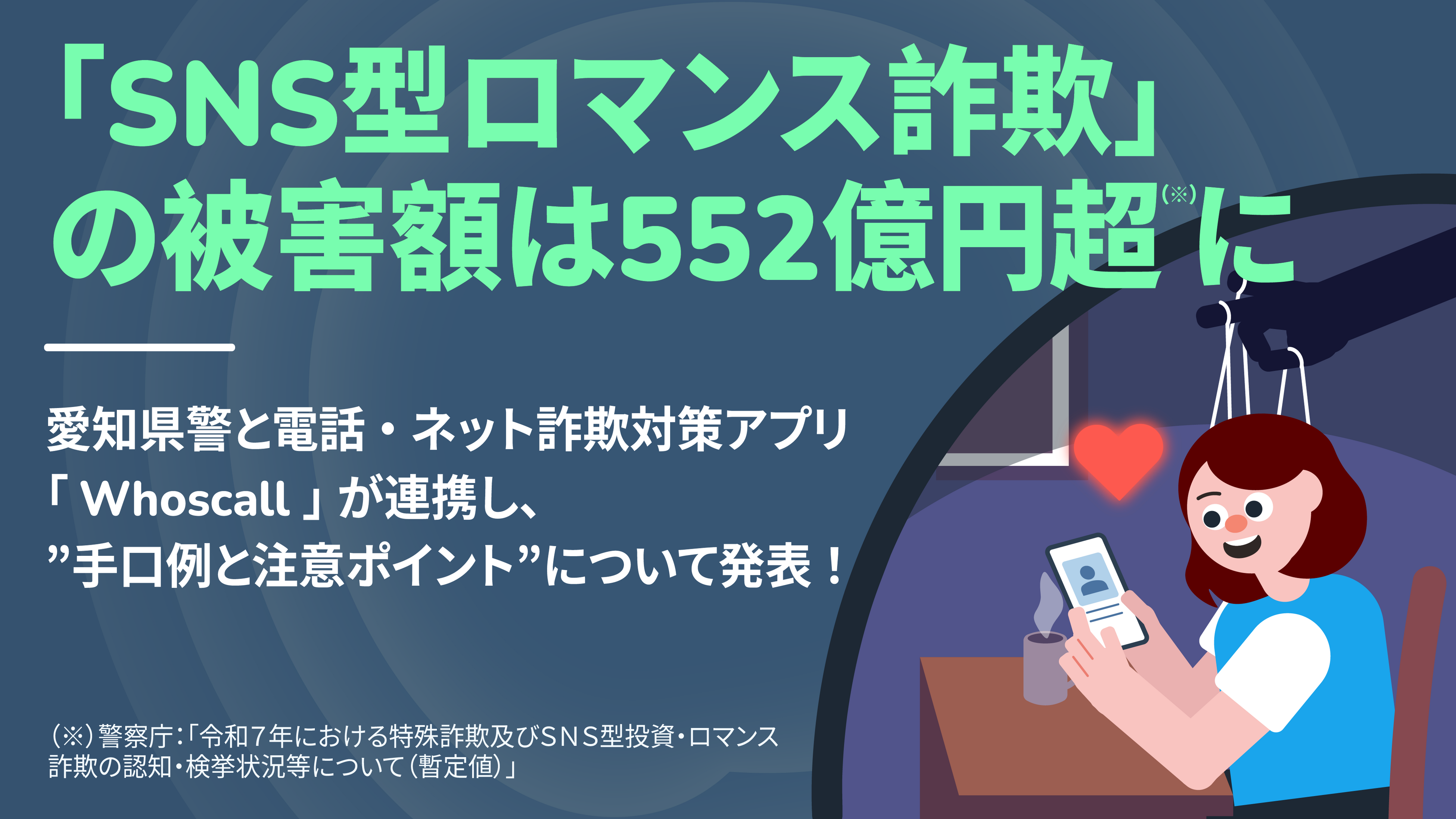 「SNS型ロマンス詐欺」の被害額は552億円超(※)に/愛知県警と電話・ネット詐欺対策アプリ「Whoscall」が連携し、“手口例と注意ポイント”について発表!