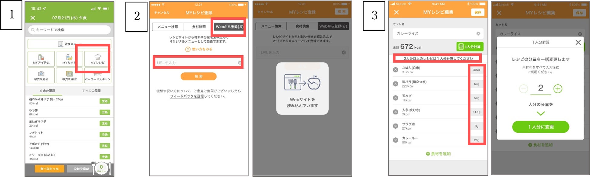 Webサイト上のレシピを参考に作った食事の記録を簡単に!