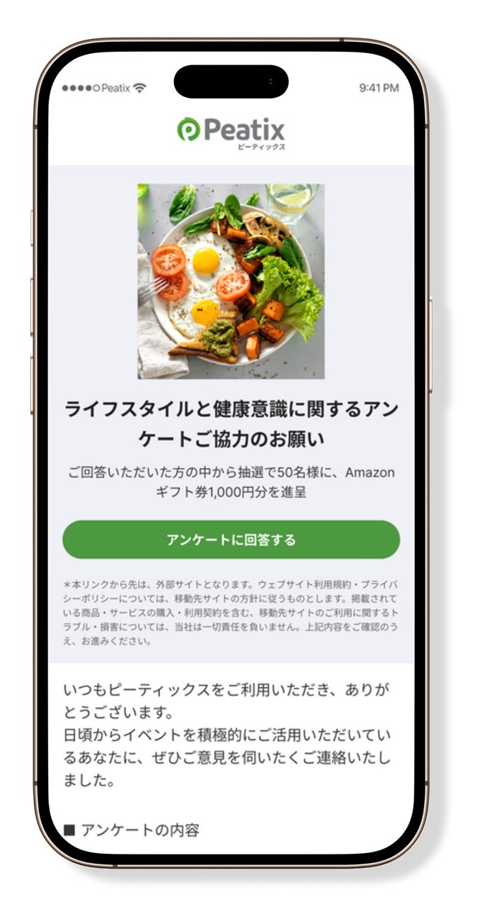 特徴: お客さまが作成したアンケートをピーティックスがメール配信