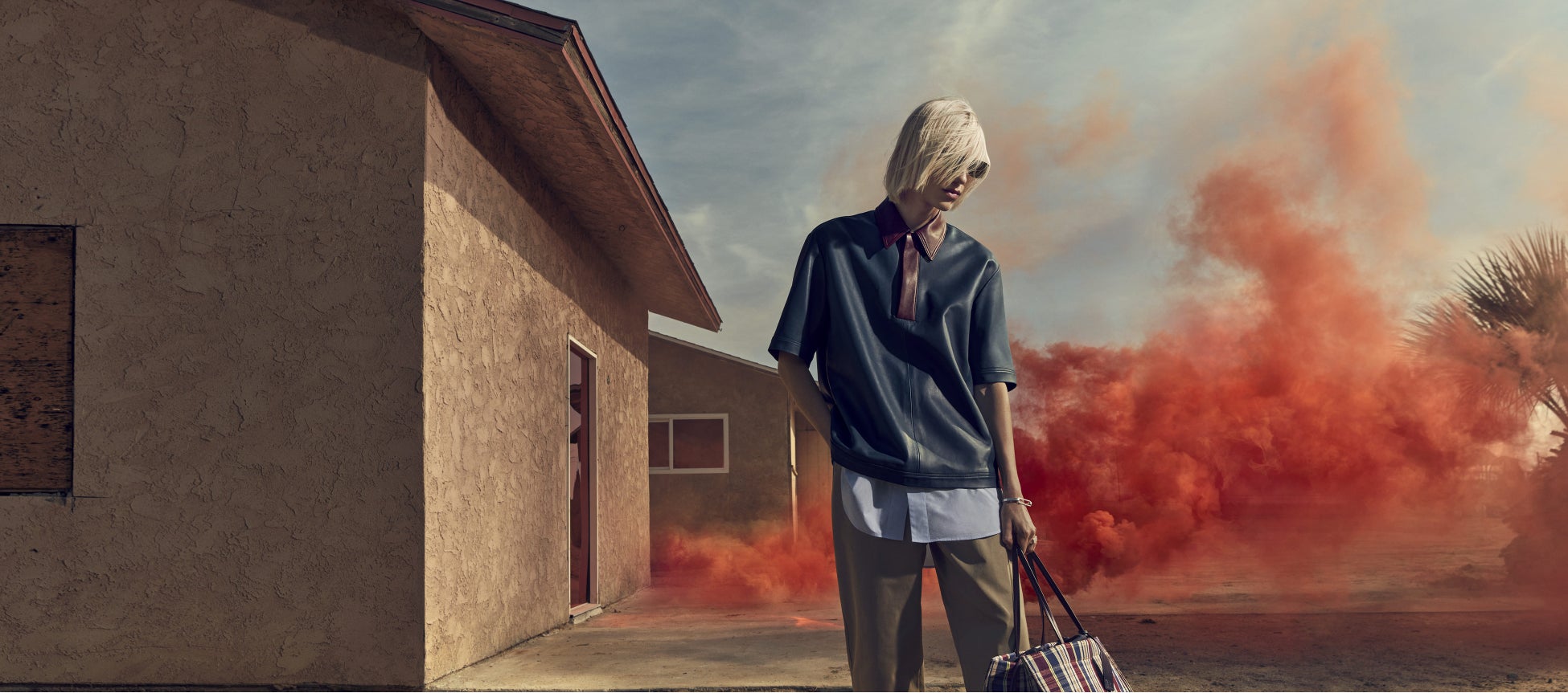 ややボクシーなシルエットのレイヤードが実現されたコレクションは、エフォートレスでありながら計算されたスマートなスタイリングが確立でき、様々なシーンに溶け込むアイテムが詰め込まれています。スポーティなトラックスーツは、パイピングされた取り外し可能なジャケット同様、ディテールにこだわってデザインされています。クールな色合いのブルーやホワイトは、よりスパイシーなトーンでまとめられています。小ぶりでコンパクトなブロックカラーのクロスボディバッグやトートバッグなど、おなじみのメンズ・コードを新しい形に落とし込んだ、完璧な調律が施されたコレクションです。