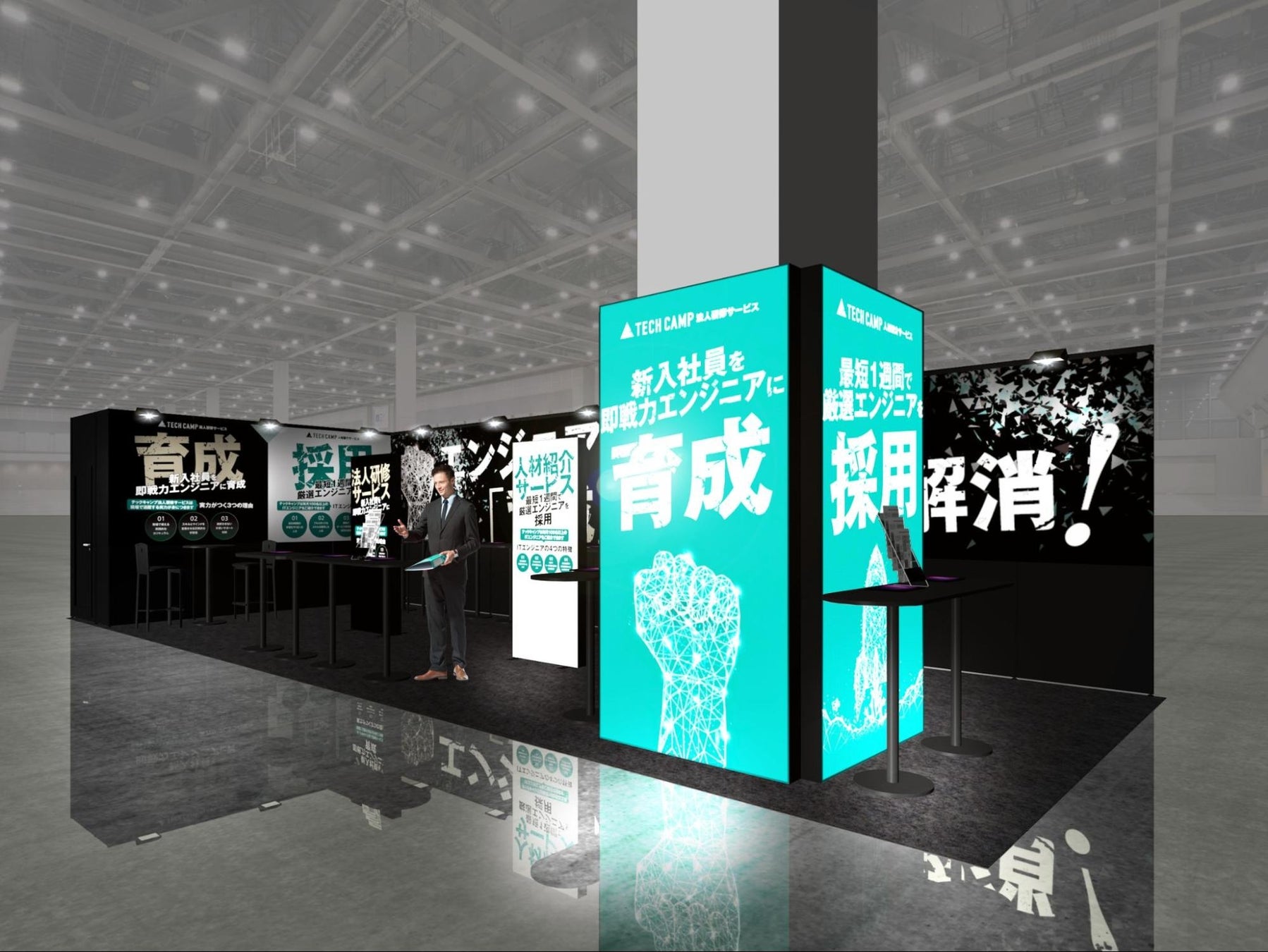 このたびの「第3回 デジタル人材育成支援 EXPO【春】」では、「テックキャンプ 法人研修サービス」の“育成”と、「テックキャンプ 人材紹介サービス」の“採用”の2つのアプローチによって、企業のエンジニア不足を解消する提案を行います。