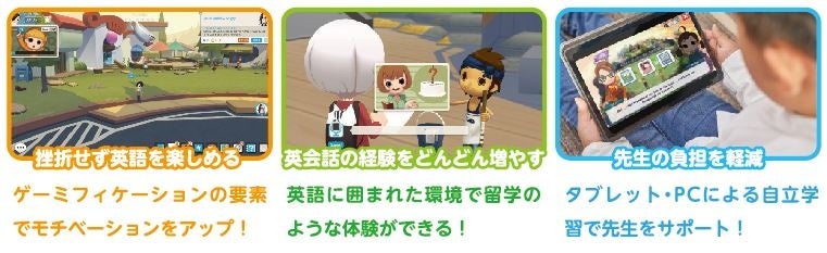 生徒は3Dのバーチャル空間で物語の主人公になり、英語でキャラクターと会話しながら、