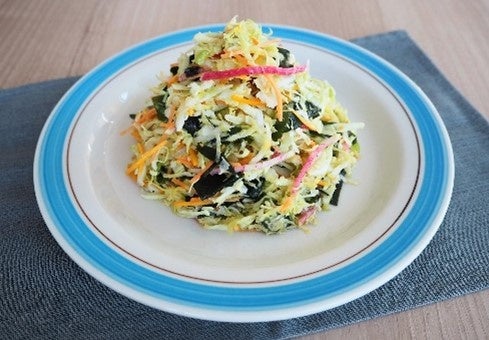 ① ボウルに「サラダクラブ 嬬恋高原キャベツミックス」、わかめを入れ、