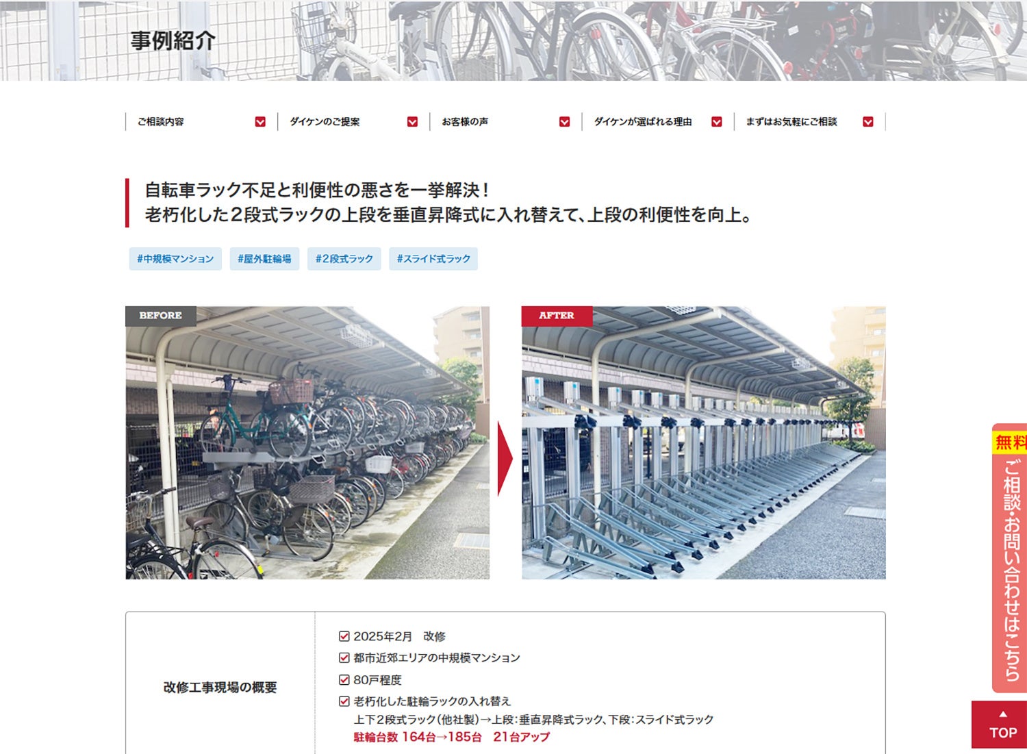 株式会社ダイケン、マンション駐輪場改修工事の専用相談サイト「リニューアル相談室」を大幅刷新
