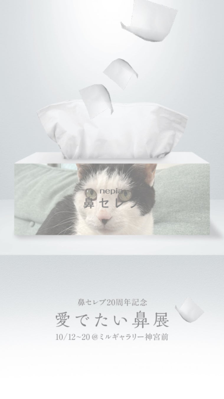かざして写真撮影をするだけでだれでも鼻セレブのパッケージになることができる特別なARフィルターが楽しめる!さらに、『愛でたい鼻展』を記念した鼻セレブティシュが舞うフィルターも登場。公式Instagramアカウントでも紹介中。イベント参加できない方にも、イベントの世界観を楽しんでいただけます。
