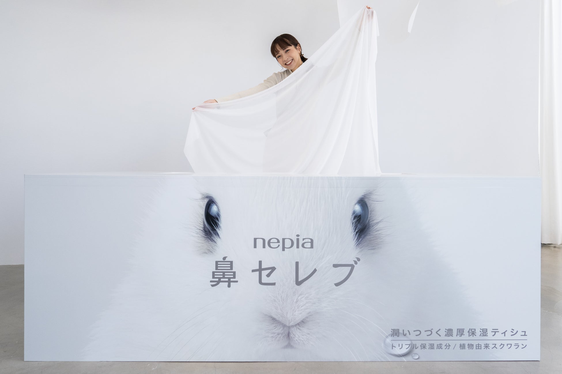 「ネピア 鼻セレブティシュ」は空気中の水分をティシュに取り込むネピア独自の「トリプル保湿」と「植物由来スクワラン」により、濃厚な潤いがつづく保湿ティシュとして、2004年の発売当初より、多くの方々にご愛顧いただいております。まるで潤いのベールをまとったような肌触りが特徴の鼻セレブティシュは、風邪・花粉の時期はもちろん、デリケートなお肌のケアやメイクアップ時にも最適なアイテムとして様々なシーンでご活用いただいております。