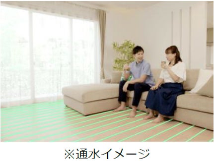 家の隅々まで敷かれたパイプに水を通すことによって家中の余分な熱を吸収。ふく射(※3)の効果でやんわりと涼しい空間を創りだします。エアコンのように冷たい風がないため、エアコン使用時に「人によって適温が違う」「体が冷えすぎる」という悩みを持つ方にもおすすめです。