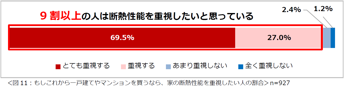 ■9割以上の人が、「これから家を買うなら断熱性能を重視したい」と回答。