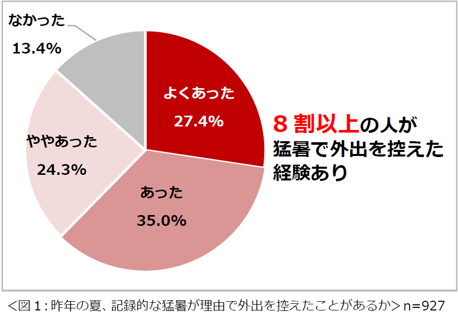 ■8割以上の人が、昨年の夏、記録的な猛暑が理由で外出を控えたことがあったと回答。