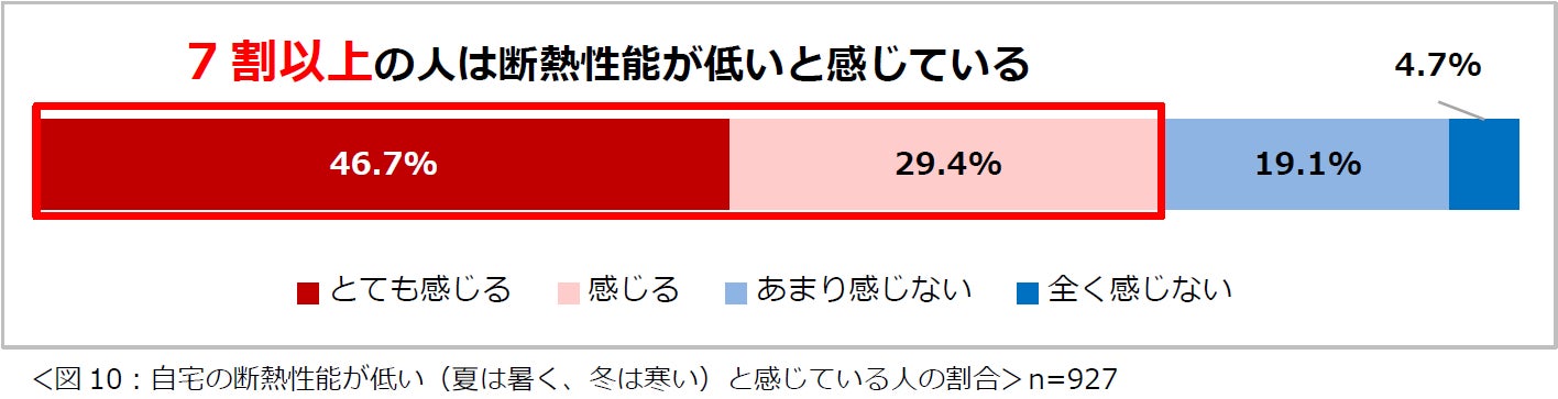 7割以上の人が、現在の自宅は断熱性能が低い(夏は暑く、冬は寒い)と感じている。
