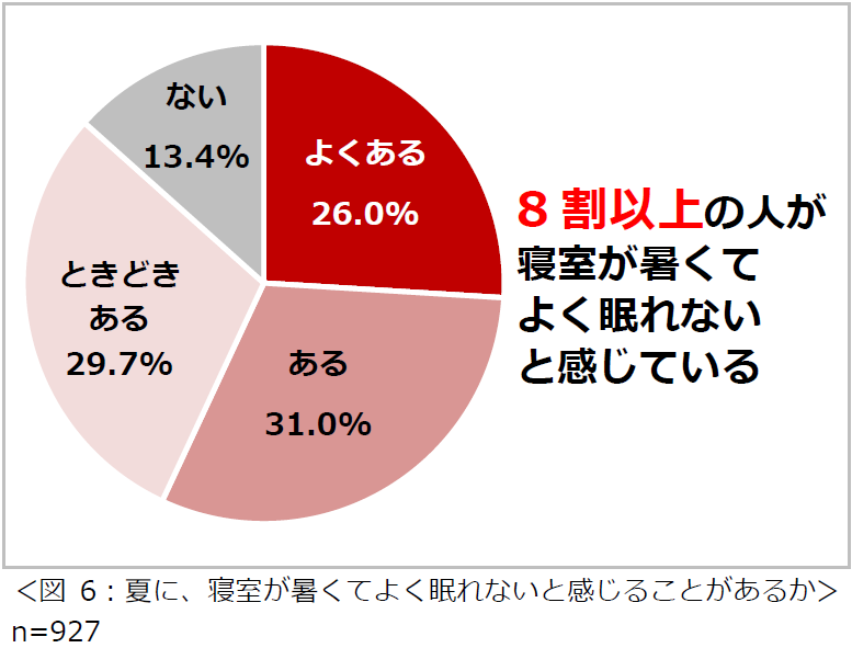 夏に、寝室が暑くてよく眠れないと感じている人が8割以上。