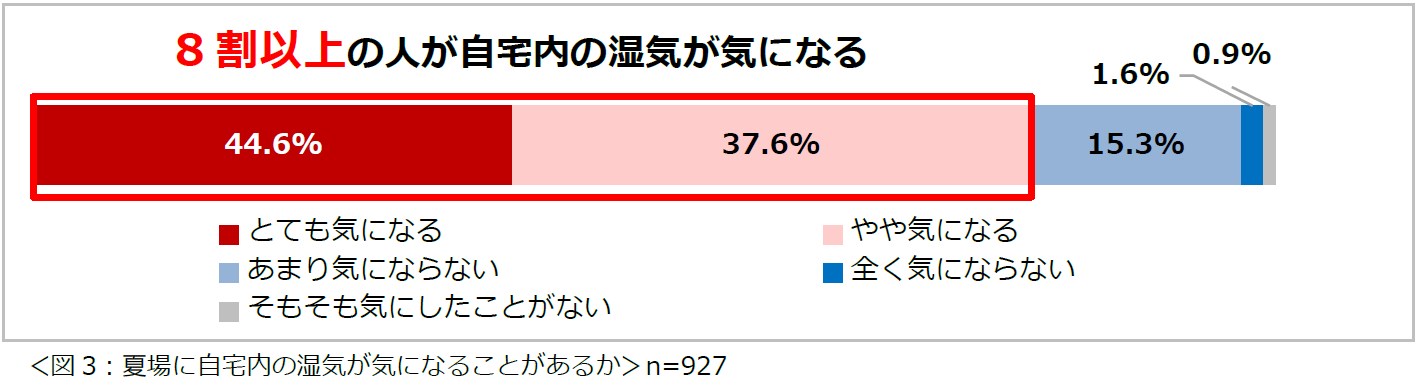夏場、自宅内の湿気が気になっていると答えた人が8割以上。