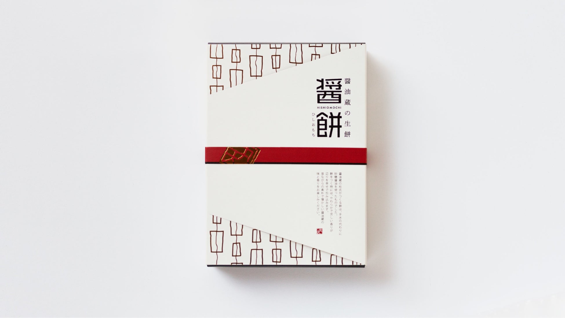 「醤餅(ひしおもち)」は、創業200年以上の歴史を誇る日本丸天醤油にて100年以上も続く社内の伝統行事である師走の「餅つき」から誕生しました。師走の1日に蔵人全員が集い、大きな臼で何杯もついた餅つきでは、お餅を混ぜるときに使う手水の代わりに自社の醤油をベースとした砂糖醤油を使い、練り上げるようにお餅をつきあげました。毎年仕立てたお餅は長年お客様やご近所の皆様への贈答用としてお配りをする「知る人ぞ知る」商品でしたが、より多くの皆様に味わって頂きたいという想いから、冬季限定のギフトとして、商品化を実施。幅広い世代から愛される逸品となりました。