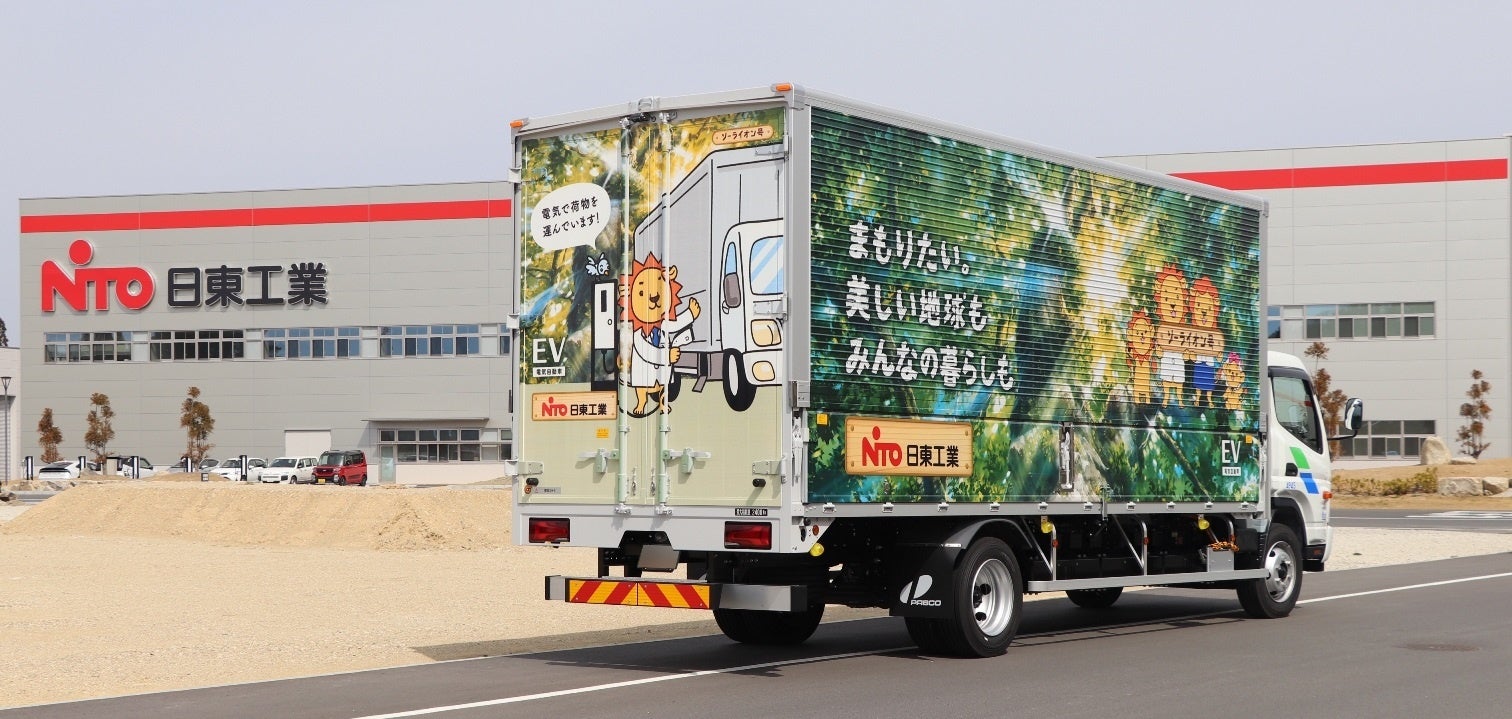 製品の輸送に使用するEVトラック(オリジナルラッピング仕様)