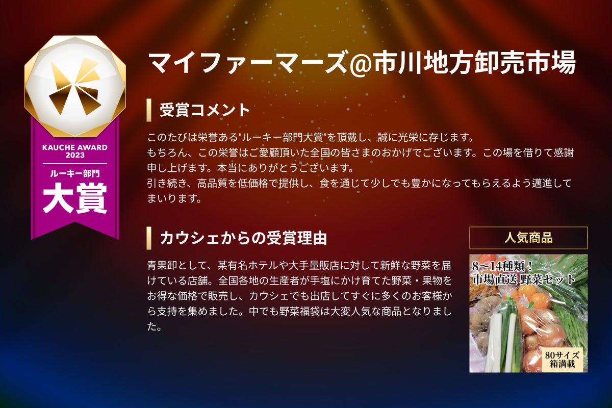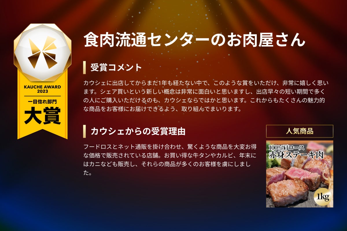 「カウシェ」での販売を開始して直ぐに秀でた結果を残された事業者を、カウシェ独自の基準から評価し、表彰する部門です。