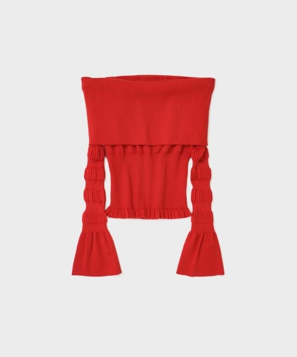 別注 STRIPE KNIT OFF-SHOULDER TOP