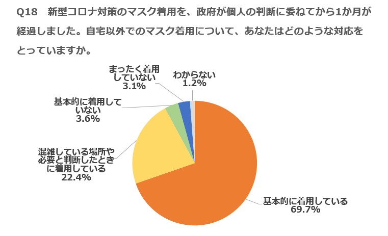 自宅以外でのマスク着用69%、春の大型連休に宿泊旅行11% --- 手指消毒や手洗いうがいの頻度変わらず7割超 ---