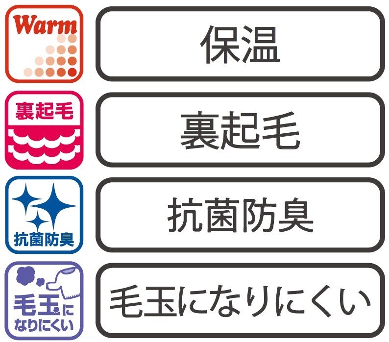 ふんわりやわらかい裏起毛素材を使用し、寒い冬でも快適に過ごせる“あったかアイテム”です。