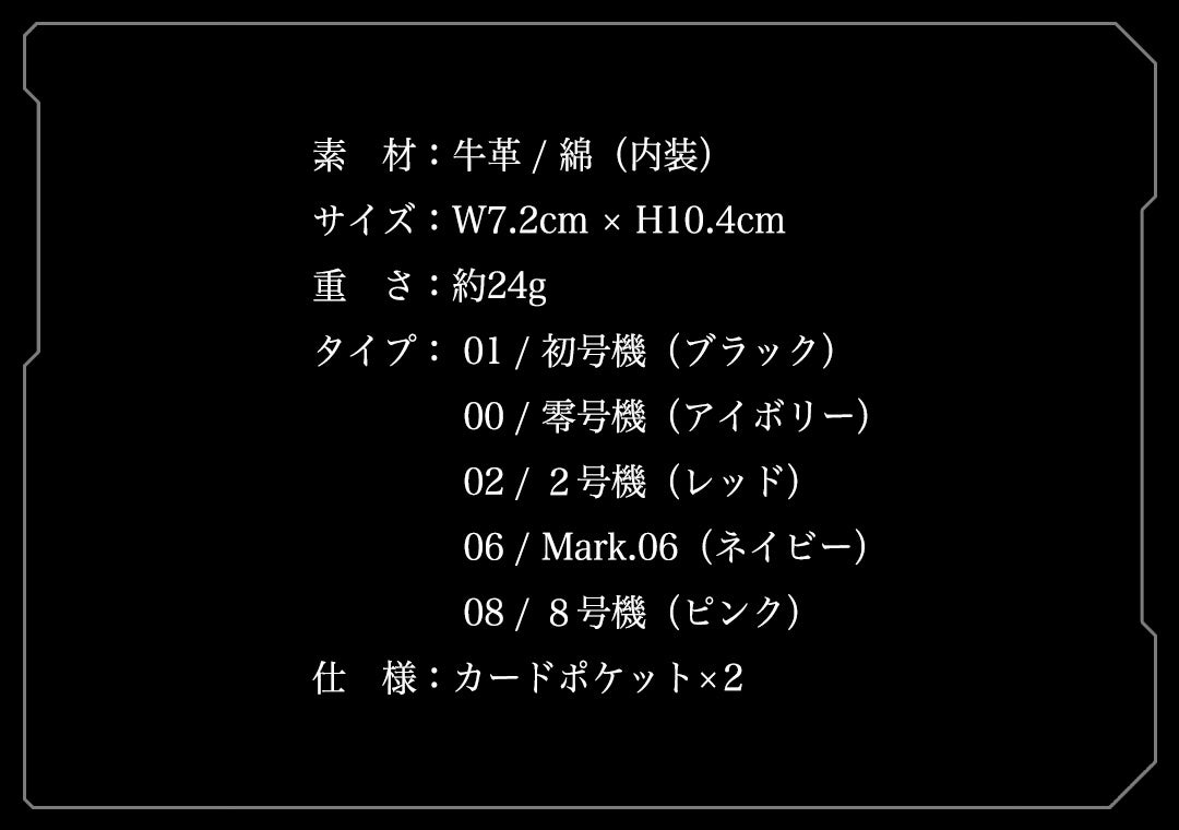 内装にも機体のカラーリングを落とし込み、持ちやすいシンプルなデザインでありながらも『エヴァンゲリオン』の世界観を表現したパスケースです。