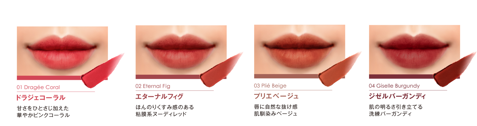 大人の唇に溶け込み、絶妙な抜け感を演出する粘膜系のカラーラインナップ! ~全4色~