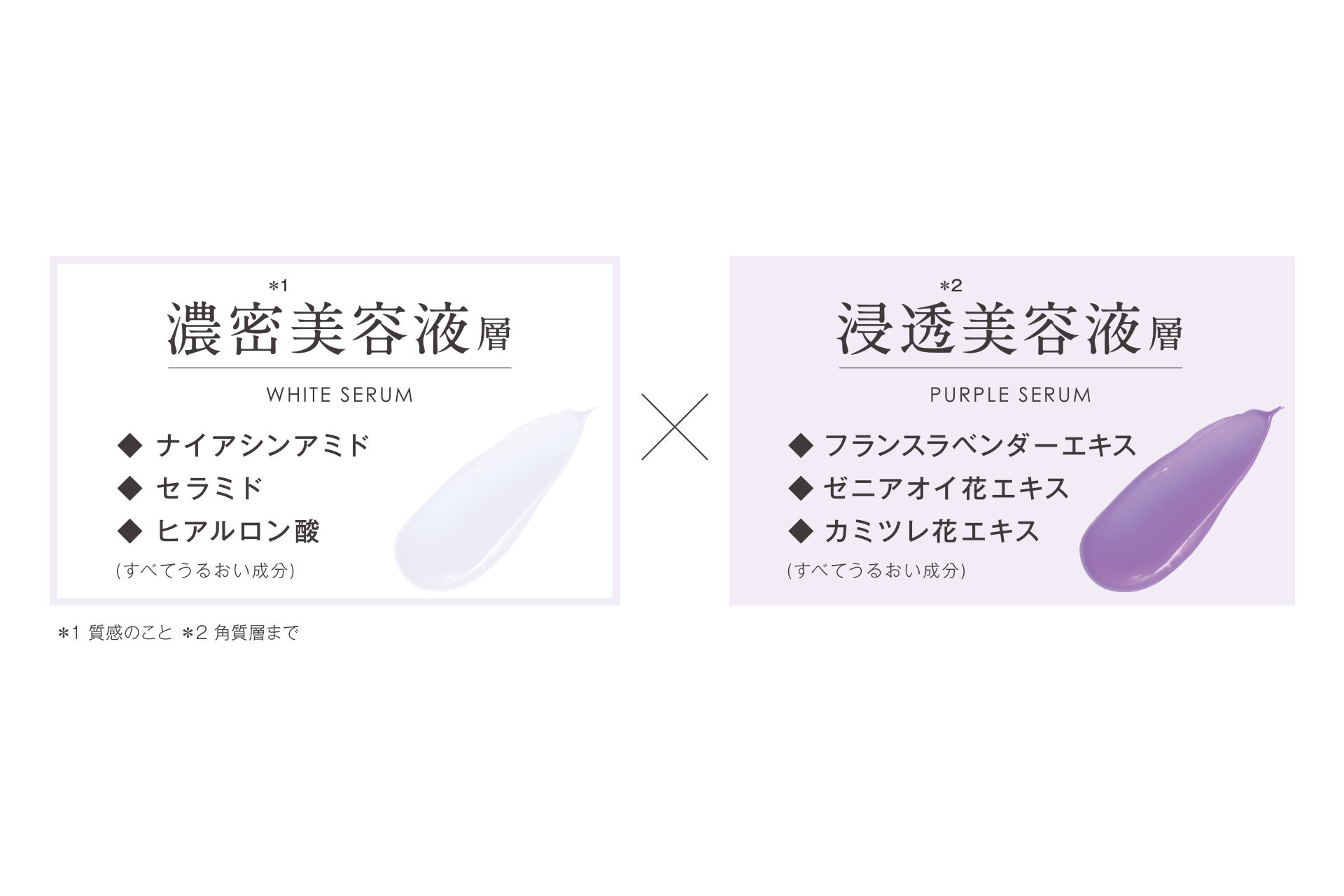 濃密※1美容液と浸透※2美容液の2層が、寝ている間に唇をうるおいで満たし、しっとりなめらかな唇に導きます。