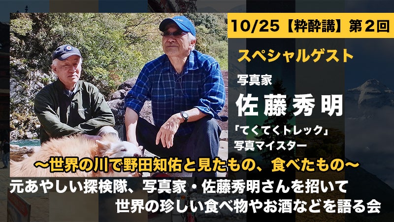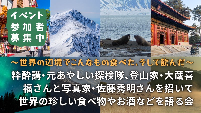 FCNT株式会社(本社:神奈川県⼤和市、代表取締役社⻑ ⽥中典尚、以下FCNT)が運営する、ウォーキングやトレッキングなど“歩く”を通じた豊かなライフスタイルを提案する参加体験型サービス「てくてくトレック」では、2022年10⽉25日(⽕)と11月29日(火)に開催予定の【粋酔講(すいすいこう)・元あやしい探検隊を招いて世界の珍しい⾷べ物やお酒などを語る会】の参加者募集を開始しました。