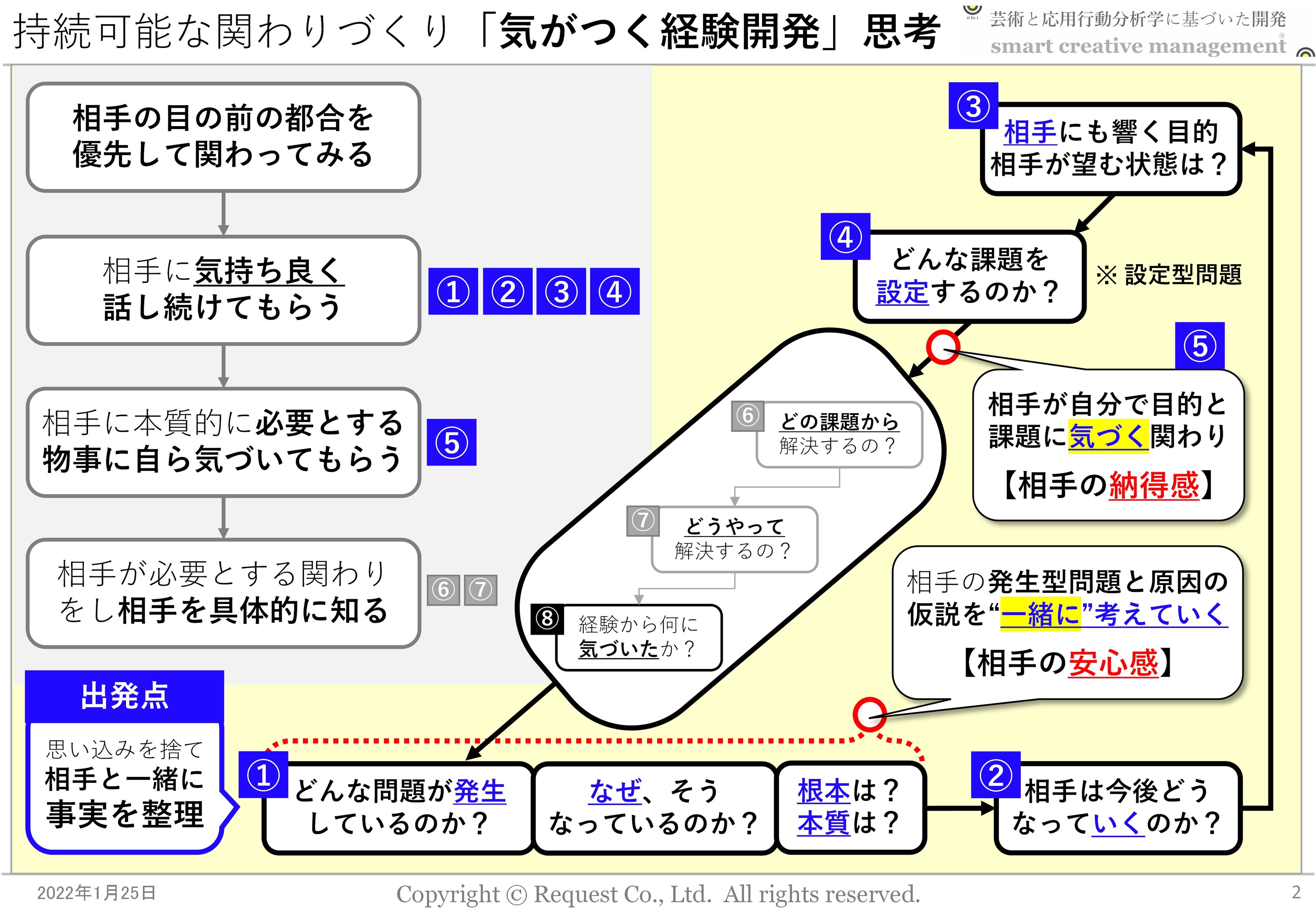 スマートクリエイティブマネジメント総合研究所とABA(応用行動分析学)オペレーションズ研究センターを構え、芸術と応用行動分析に基づいた開発: 需要創造の科学® “ smart creative management® ” を22年間をかけて開発。社員30,000人の企業から年商3億円の地域密着型企業へ提供実績を有しています。 実績は840社以上。