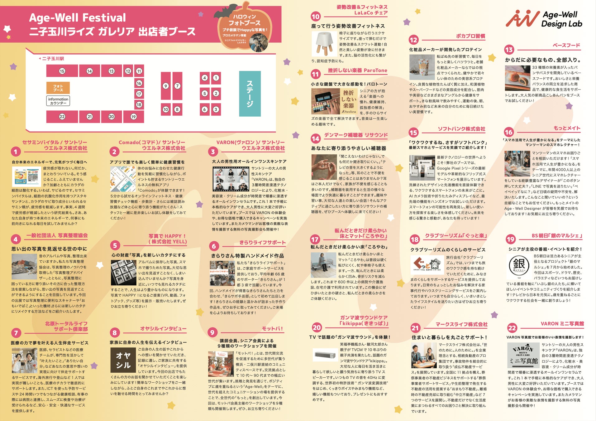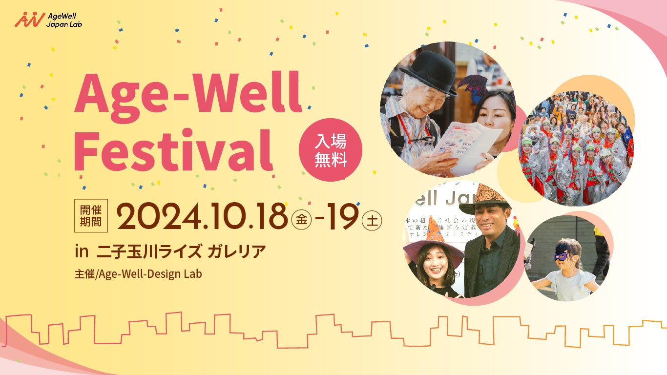 「Age-Well Design Lab」は、2024年10月18日(金)と19日(土)に「Age-Well Festival 」を二子玉川ライズ ガレリアにて開催いたします。今年も、昨年に引き続き、未来の超高齢社会を体感できる国内最大規模のイベントとして、シニア世代とその家族をはじめ様々な関係者が集う場となります。