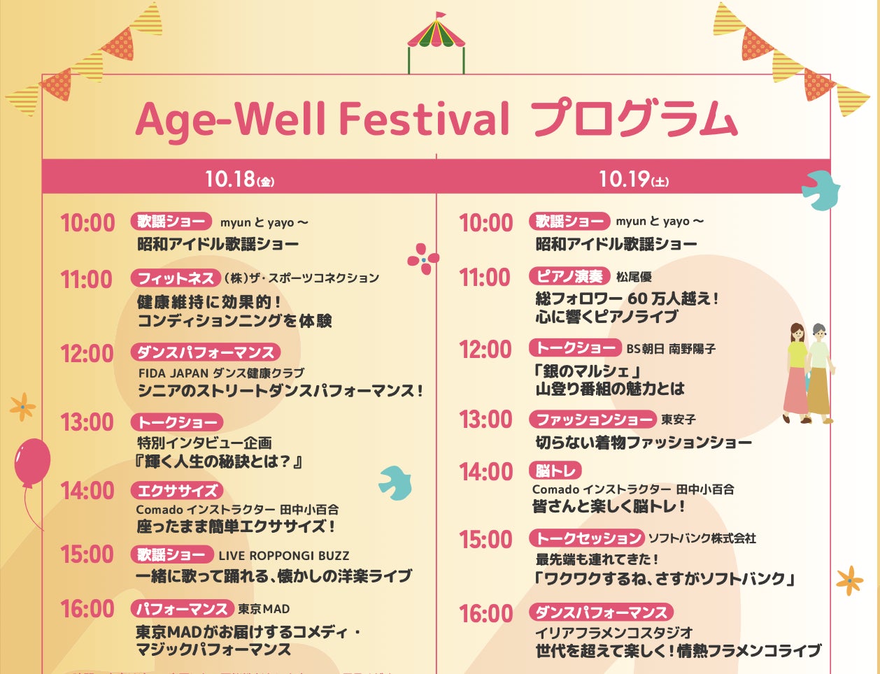 10,000人以上が来場予定、国内最大級のシニア向けイベント「Age-Well Festival」2024年10月18日(金)と19日(土)に開催。豪華ステージタイムテーブルと出店ブースを発表!