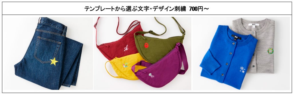 100種類以上のテンプレートから選べる刺繍サービス(これまでMY UNIQLOとして実施)。当日お買い上げいただいた服はもちろん、飽きて着なくなった服や、マークや名前を入れたい子供服など、お持ち込みいただいたユニクロ商品にも対応します。オリジナルデザインの刺繍を施すことも可能です(7,500円~)。
