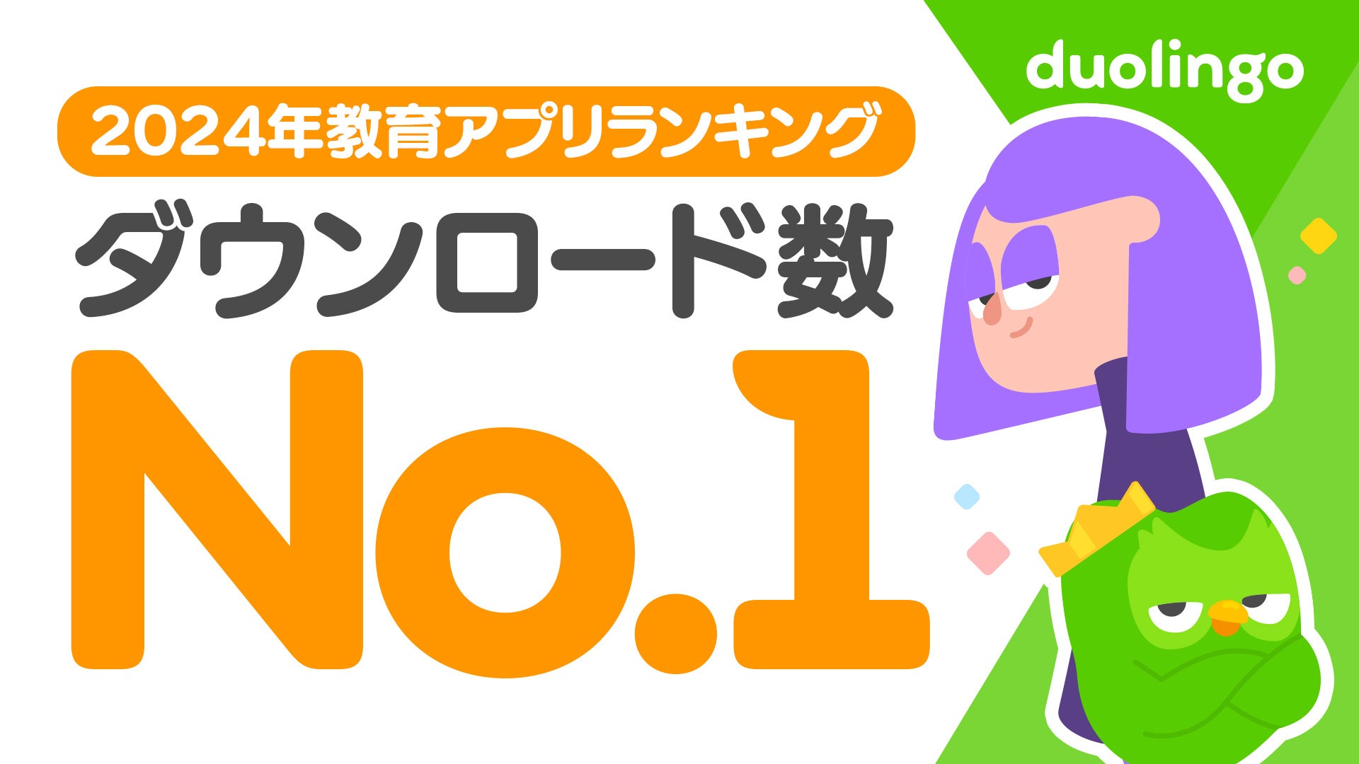 Duolingo, Inc.(本社所在地:Pittsburgh, USA)が提供する教育アプリ「Duolingo」は、米Sensor Towerによる調査において、2024年通年の日本国内におけるダウンロード数、および収益(*1)で教育アプリカテゴリーランキング1位を獲得しました。累計ダウンロード数および収益においても、日本国内でNo.1の教育アプリとなっています。