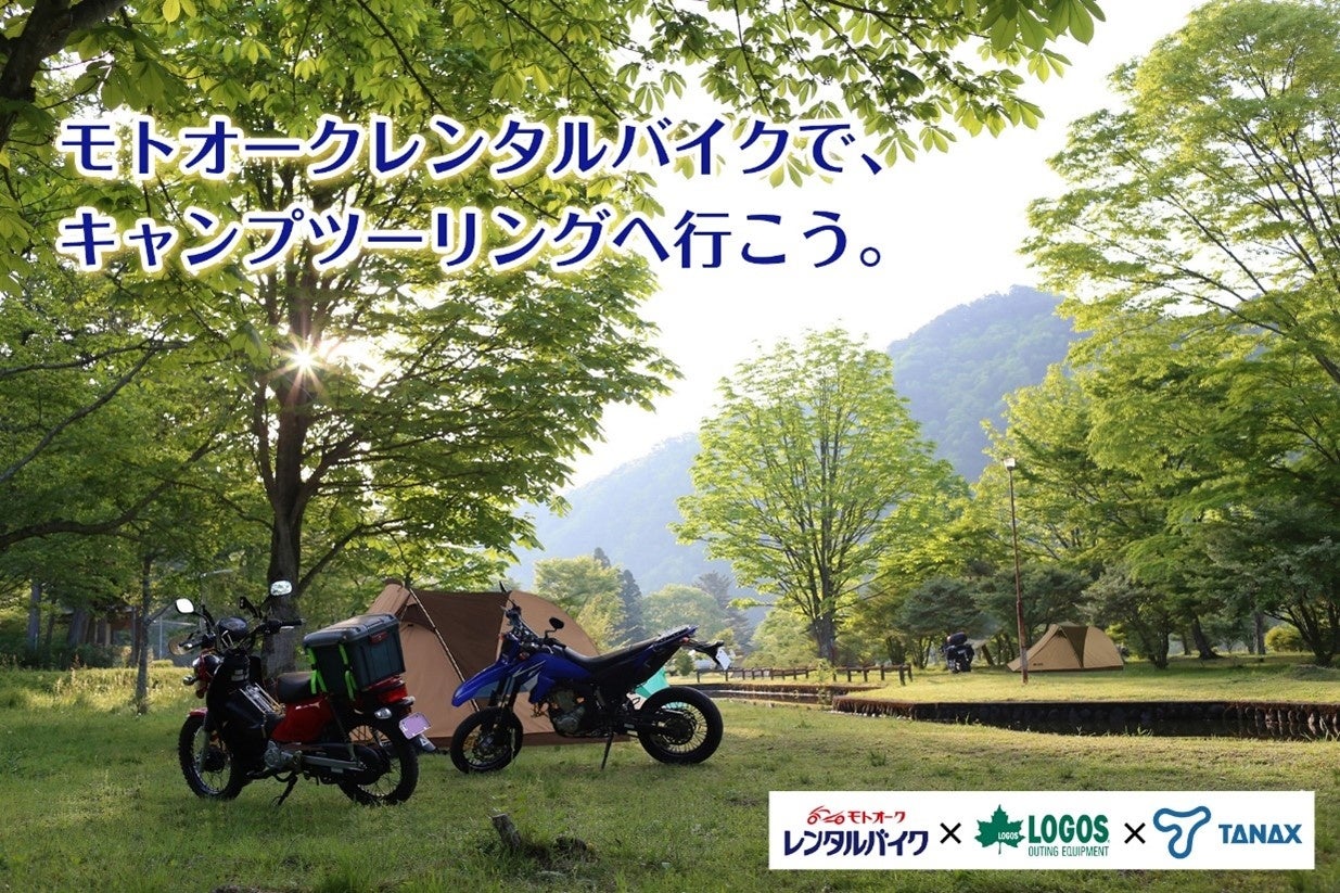 情報流通支援サービスの株式会社オークネット(本社:東京都港区、代表取締役会長CEO:藤崎 清孝 代表取締役社長COO:藤崎 慎一郎、以下:オークネット)の子会社である株式会社オークネット・モーターサイクル(本社:東京都港区、代表取締役社長:福田 博介、以下:オークネット・モーターサイクル)は、株式会社ロゴスコーポレーション(本社:大阪市住之江区、代表取締役社長:柴田茂樹、以下:LOGOS)と、タナックス株式会社(本社:千葉県流山市、代表取締役社長:田中浩二、以下:タナックス)とのコラボレーションにより、レンタルバイクサービス「モトオークレンタルバイク」のオプションサービスとして「キャンプツーリングセット」のレンタルを2022年9月1日から開始いたします。