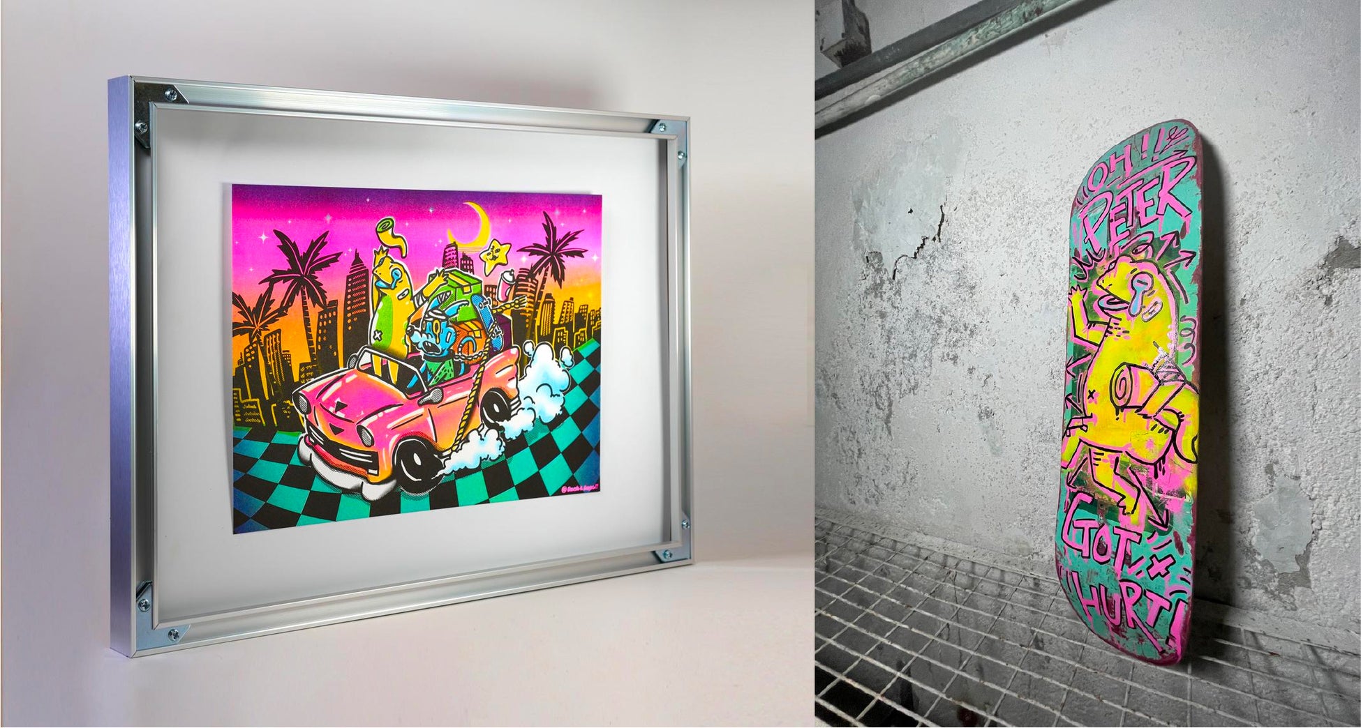 Ouch & Oops risograph painting / Ouch & Oops Skateboard