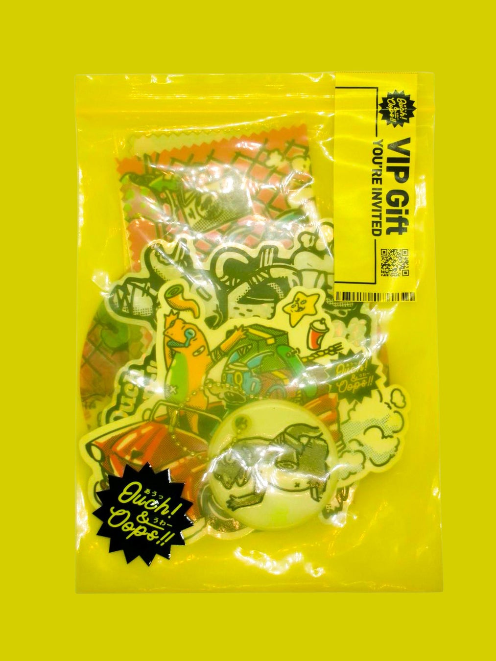 ■来場者特典:SOMSOC GALLERY店頭で「Ouch & Oops!!」作品およびグッズをご購入いただいた先着40名様に、ステッカーやキーホルダーなどが入ったVIP GIFTをプレゼント!