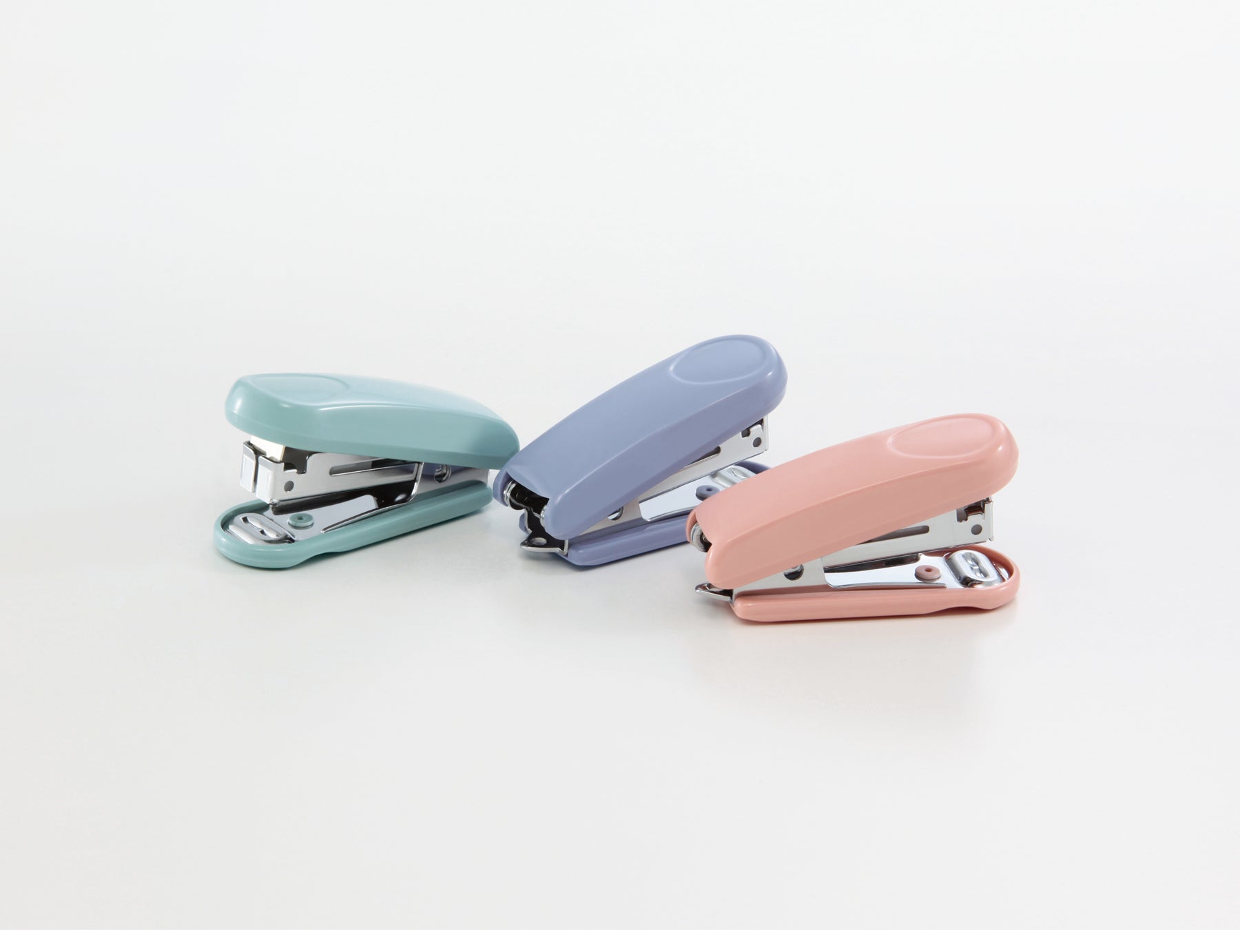『HD-10P』は、スぺパ(スペースパフォーマンス)に優れた、コロンとしていてかわいいコンパクトなホッチキスです。ホッチキス本体の全長は約5cmと当社スタンダードモデルHD-10NXの全長9cmと比較してコンパクトです。また、落ち着きがありながら地味にならない色合いのくすみカラーは、柔らかい雰囲気があります。