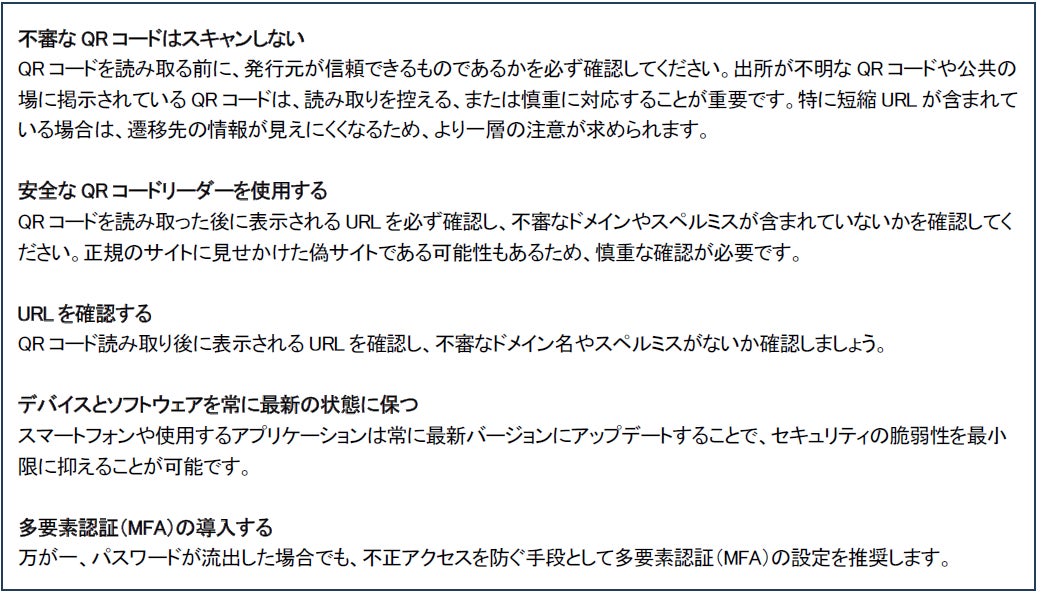 本調査の結果から、日本人の約半数が日常的にQRコードを利用していることが判明し、今後も利用率が増えることが予測されます。一方で、QRコードの利用頻度が増えることにより、QRコード技術を利用した新しいタイプのフィッシング詐欺「クイッシング」にも注意が必要です。クイッシングとは、「QRコード」と「フィッシング」を組み合わせた造語で、サイバー犯罪者がQRコードを悪用してユーザーを不正なサイトに誘導する手法を指します。そのため、より一層セキュリティに対する対策が必要です。