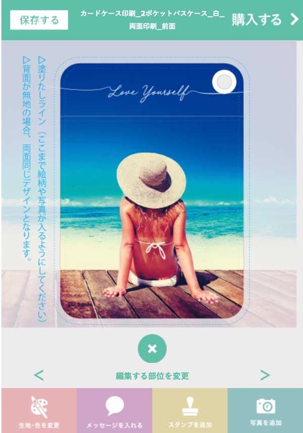 下記URLをクリックすると、オリジナル2ポケットパスケース作りが体験できます。デザイン作成は無料です。もしお気に入りのデザインができればもちろん購入可能!